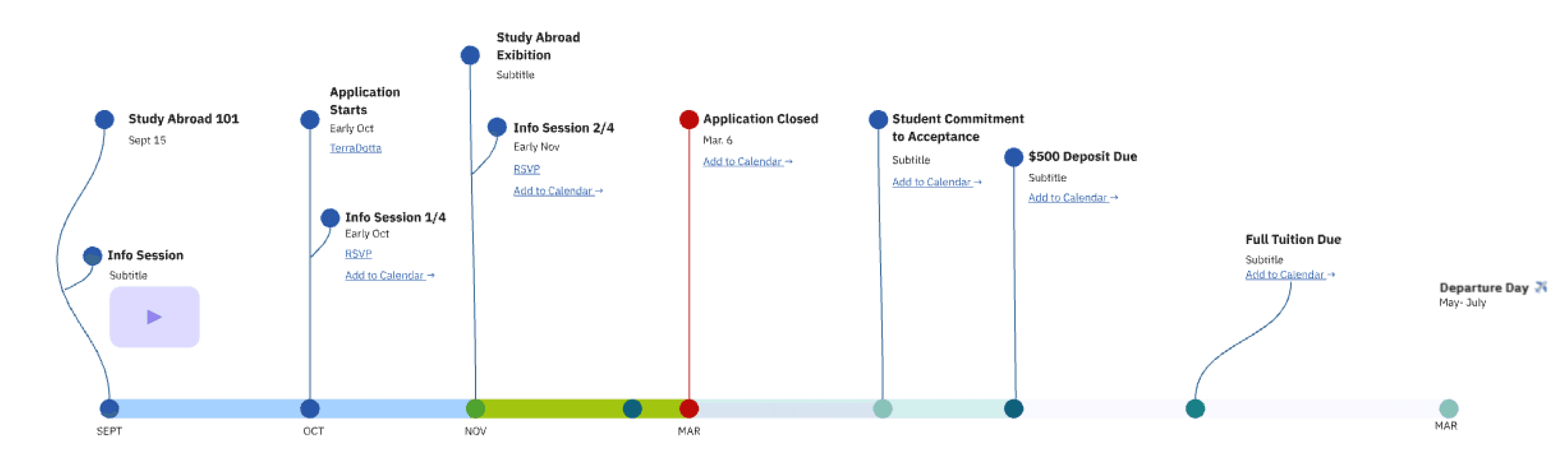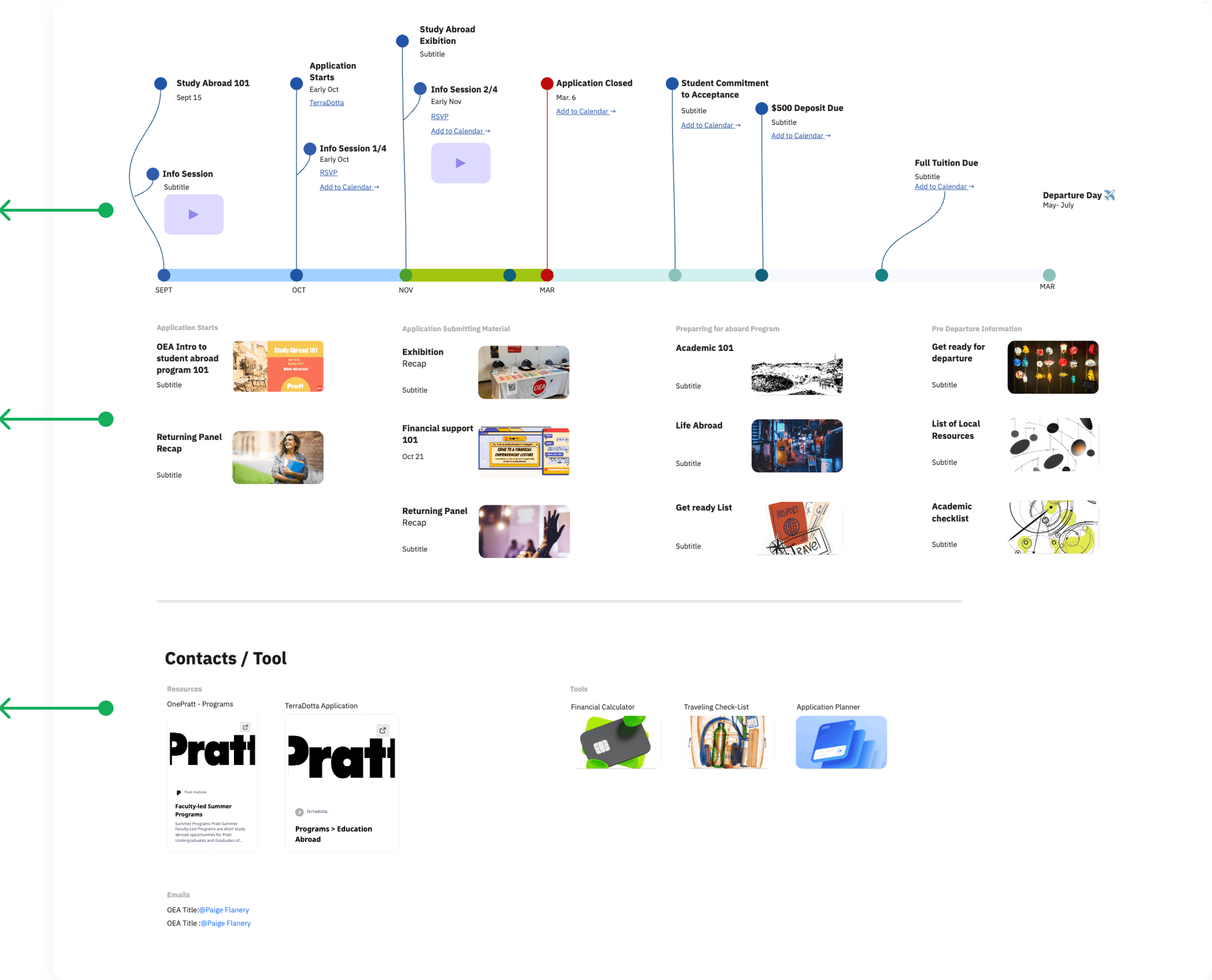 This intervention via Miro brings everything together; deadlines, requirements, resources, contacts, and pre-departure milestones into a single timeline that students can reliably follow.