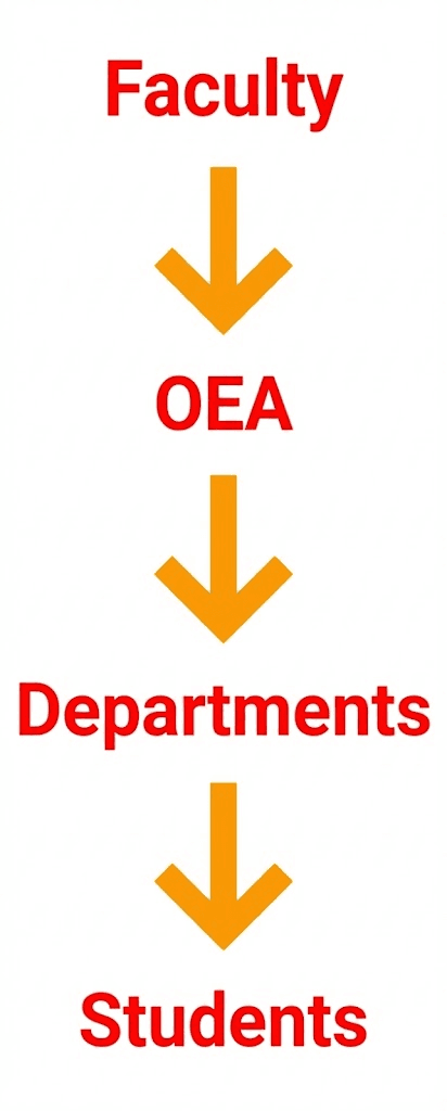 Faculty often struggle to reach the right students, and OEA ends up compensating with last-minute promotion.